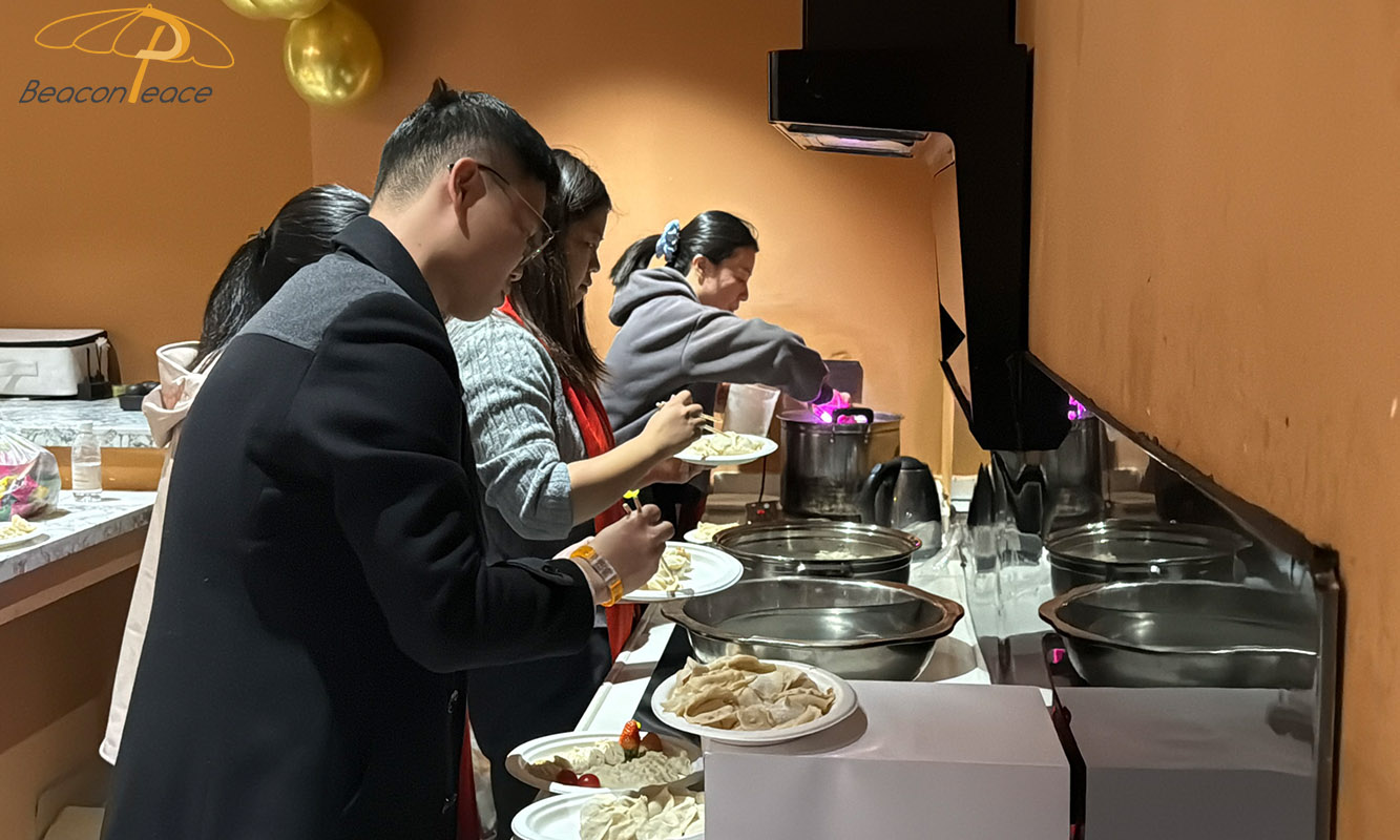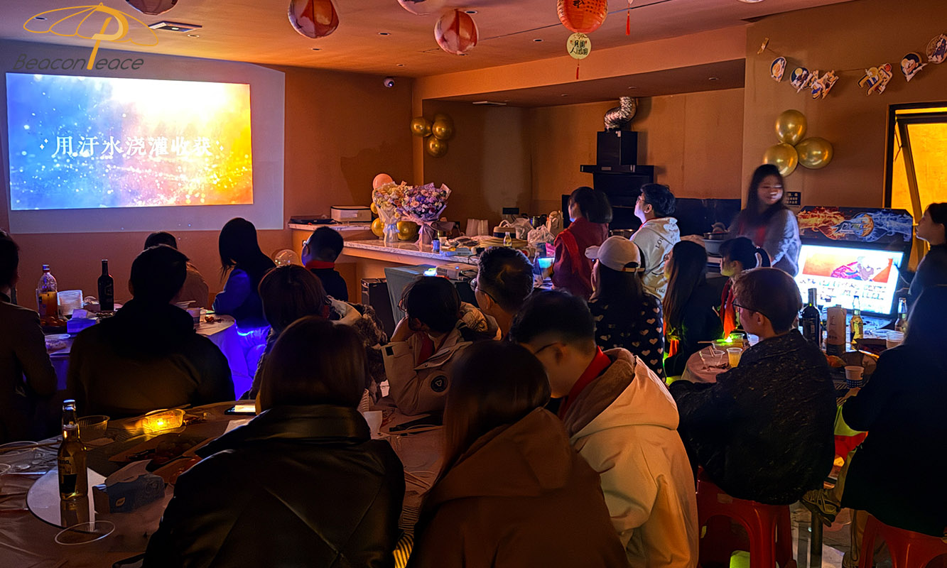 Following the awards ceremony, the dinner commenced as scheduled, with a lavish spread of delicious dishes that were visually appealing and tantalizingly fragrant. Sam, the General Manager of Beacon Peace, delivered a speech reviewing the company's development in 2025, emphasizing the importance of teamwork and expressing his sincere gratitude to all employees for their hard work. He pointed out that it was their collective efforts that enabled the company to steadily progress and achieve remarkable results in a highly competitive market. The company's development speed, particularly in product innovation and market expansion, was truly inspiring. Attendees raised their glasses, discussing their goals and visions for the coming year, and the positive atmosphere continued to build throughout the dinner, filling everyone with anticipation.
