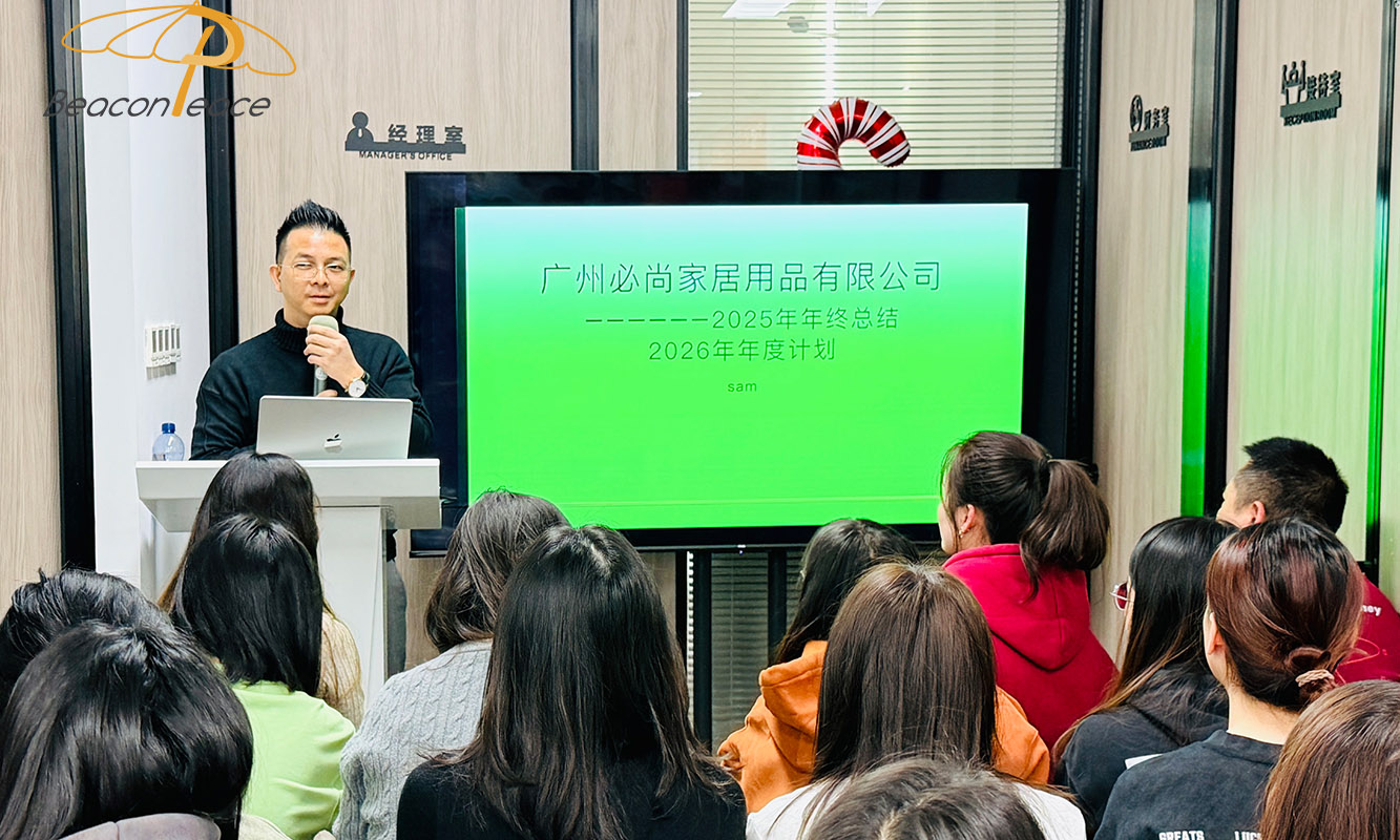 The conference ended successfully with warm applause. At the end of the meeting, Sam also sent his sincere blessings to all customers, thanked them for their continued support and trust in Beacon Peace outdoor furniture, and looked forward to continuing to work together to achieve great results in the new year. I hope everyone will be healthy, happy and prosperous in 2026!