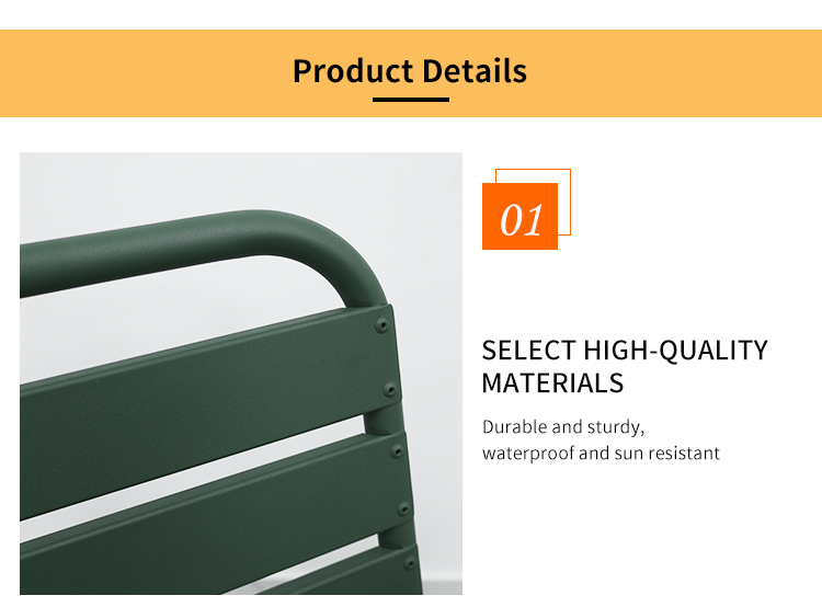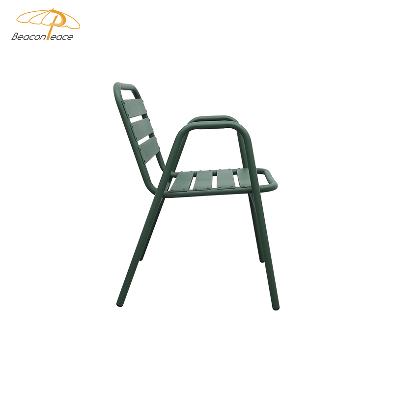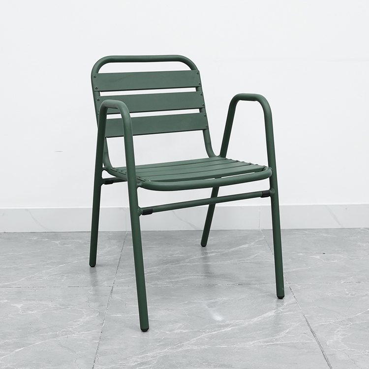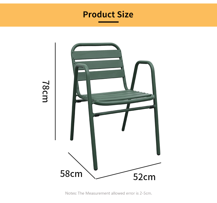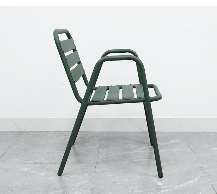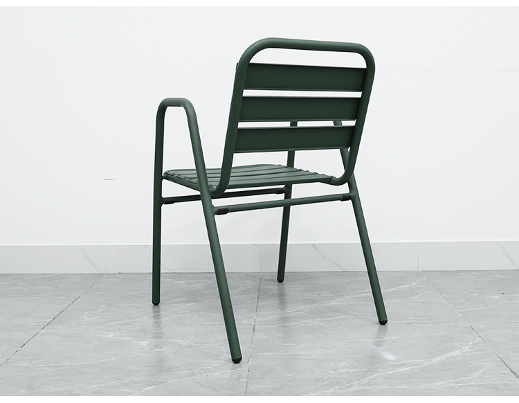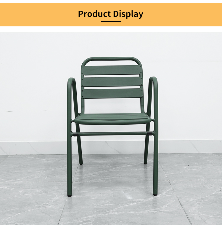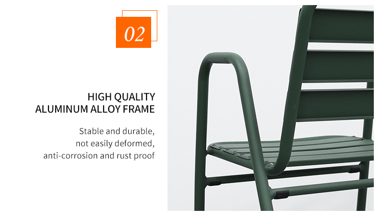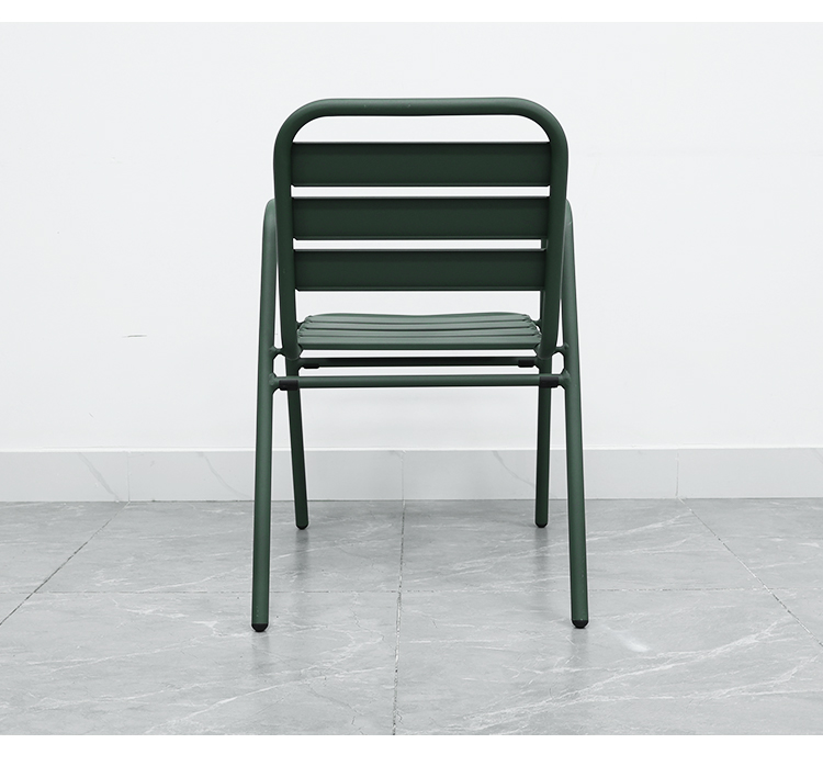 This aluminum alloy outdoor chair features a robust frame constructed using a welding process, ensuring its stability and durability. Its exterior is powder-coated for a vibrant color and corrosion resistance, making it suitable for various outdoor environments. The cleverly designed design allows for easy stacking, saving storage space, making it especially ideal for restaurants, cafes, or family gatherings. It enhances the ambiance of any space while withstanding various weather challenges, making it an ideal choice for outdoor activities.