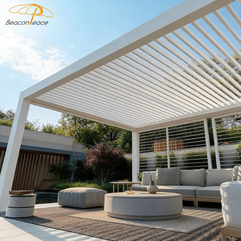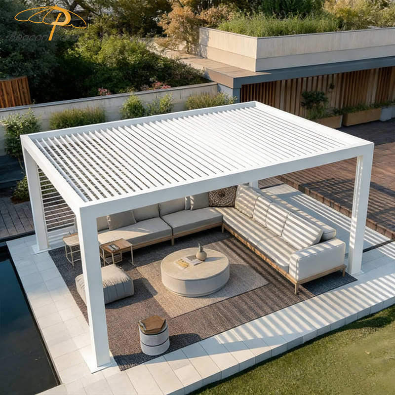 BP8711 Modern Aluminium Pavilion Outdoor Leisure Gazebo Aluminum Louvered PergolaMOQ :