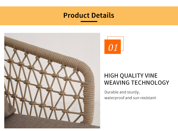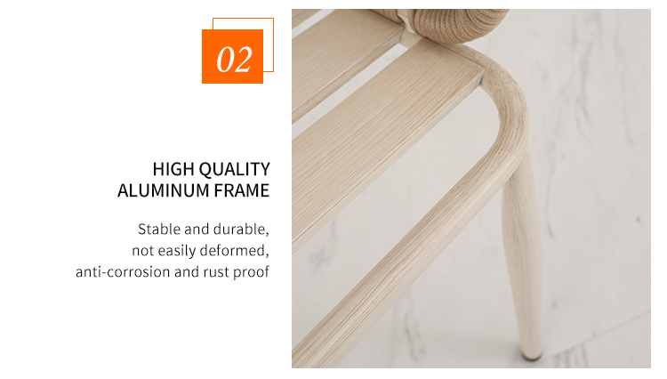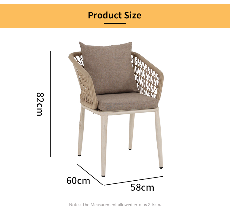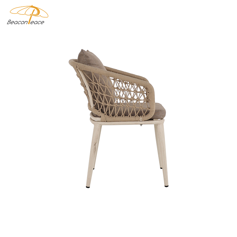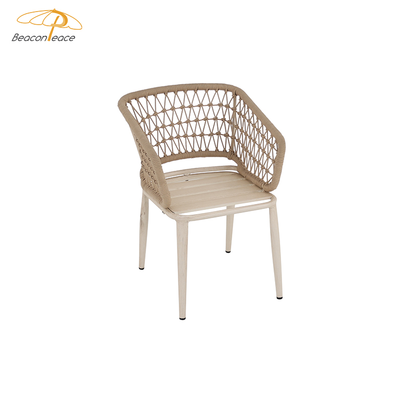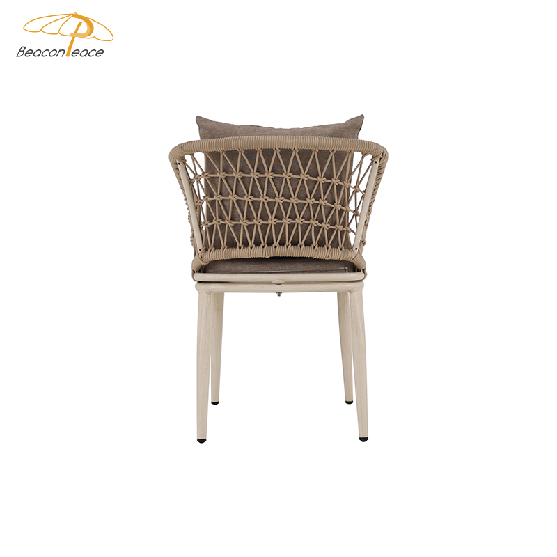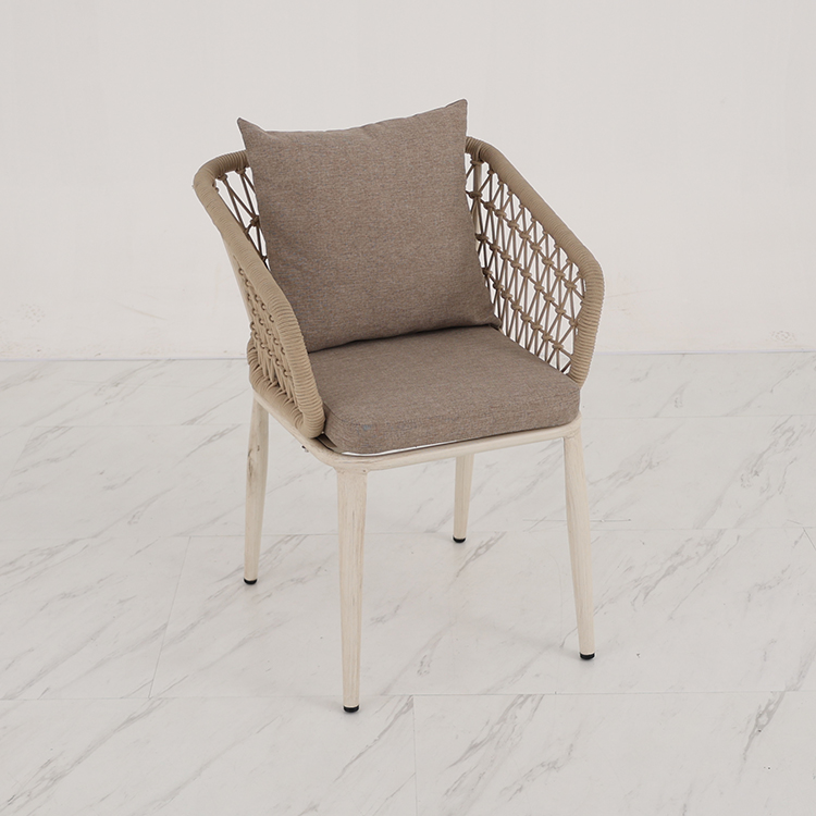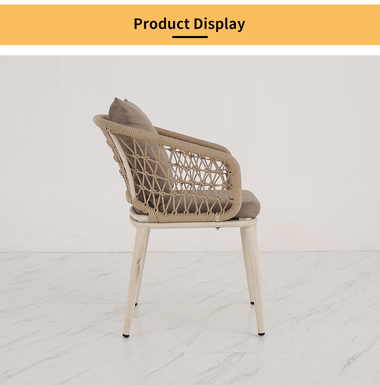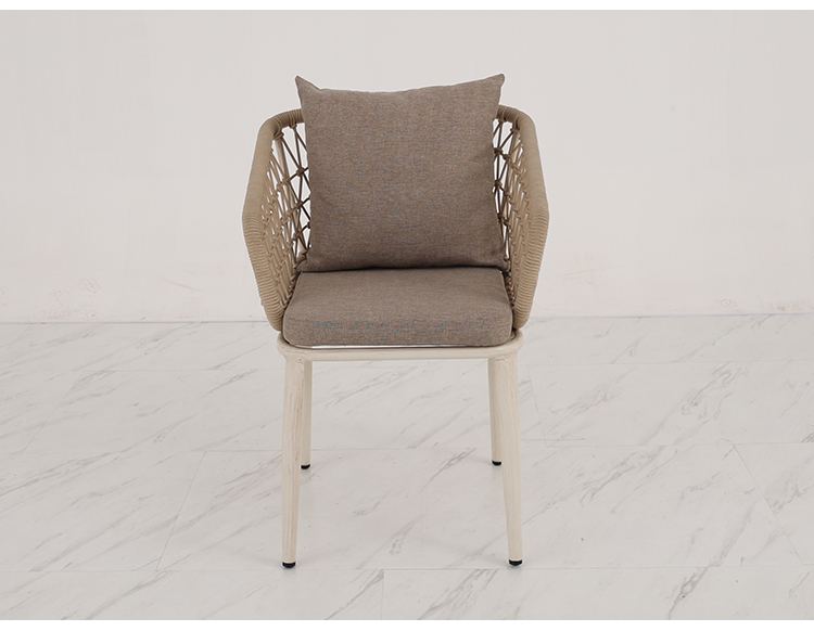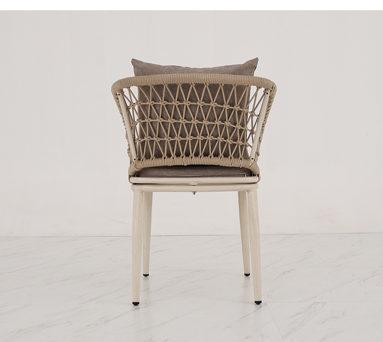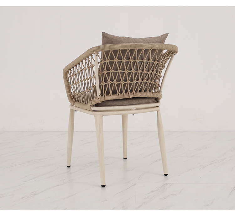 This outdoor aluminum alloy chair features a sturdy aluminum frame, comfortable armrests and backrests, and a simple yet stylish design. The seat, backrest, and armrests all utilize exquisite rope weaving, providing a unique tactile feel and elegant visual appeal. Whether for leisure time or social gatherings, it adds comfort and sophistication to your outdoor space. Sturdy, durable, and comfortable, it makes every moment outdoors truly enjoyable.