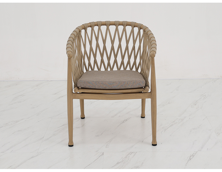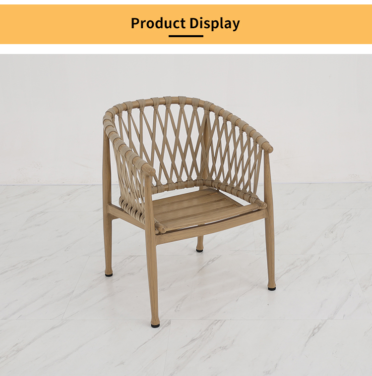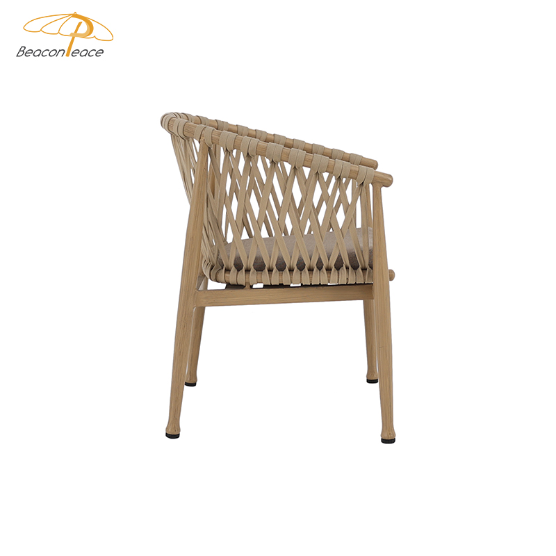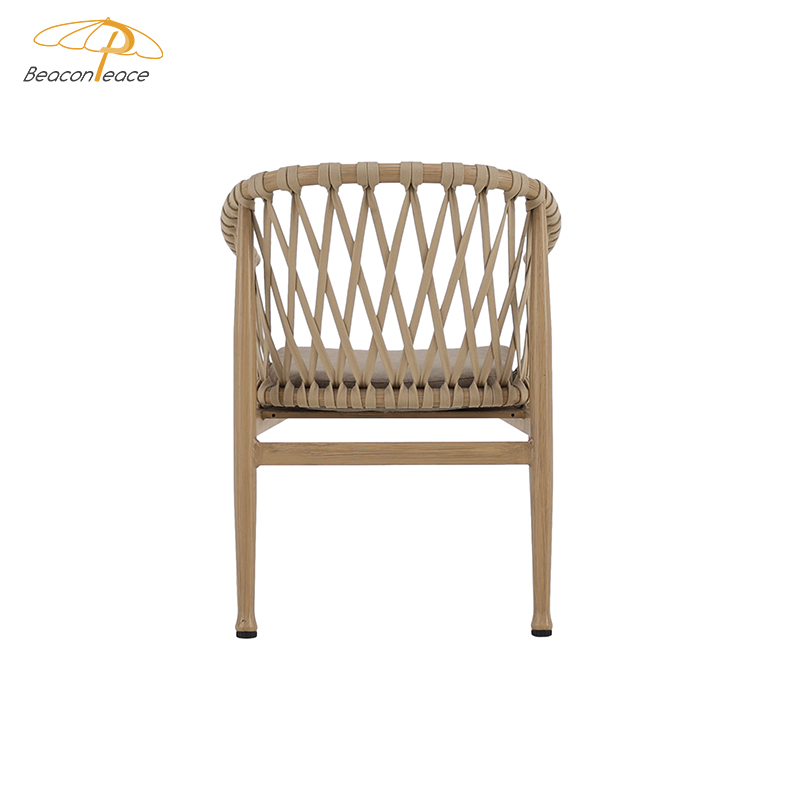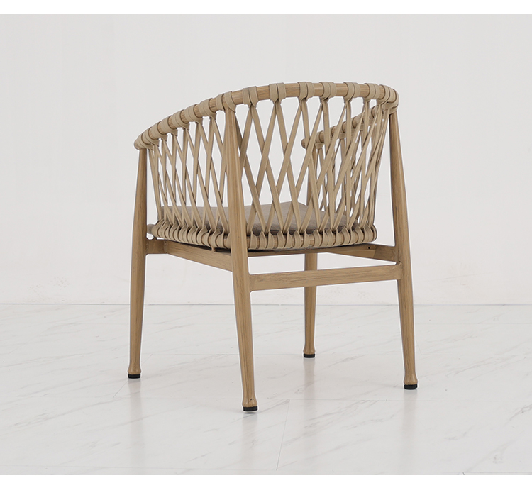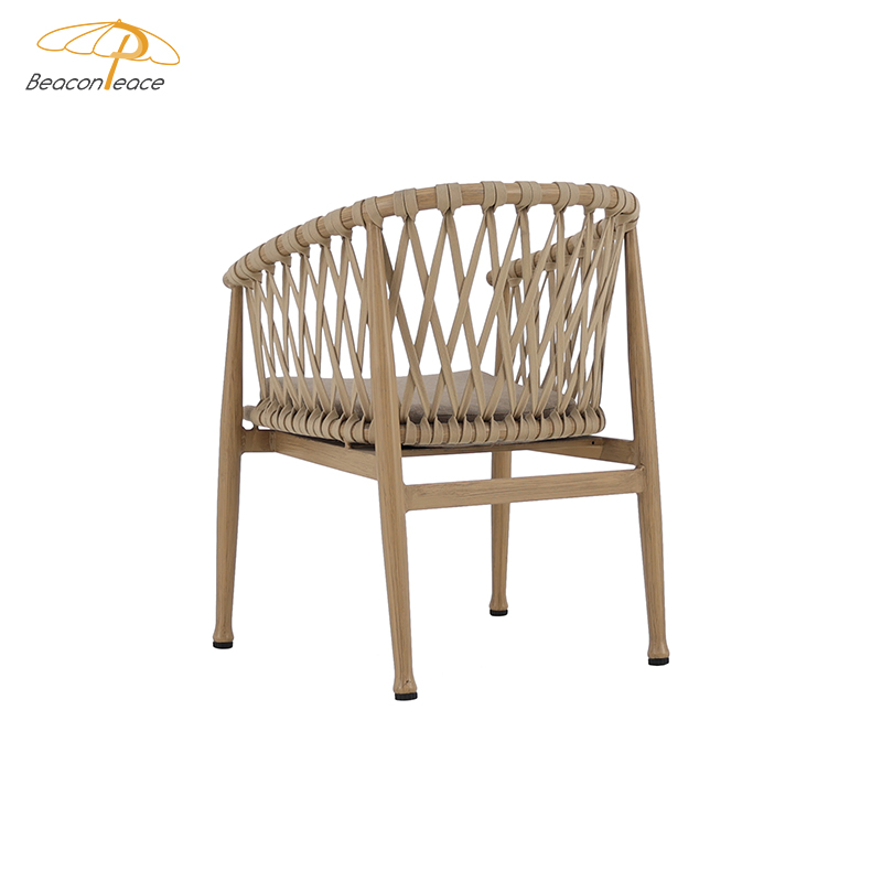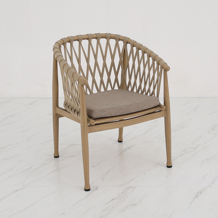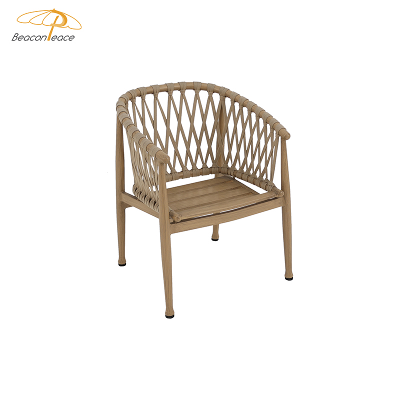 BP5891 Modern Outdoor Aluminium Furniture Aluminum Brush Wood Grain Rope Woven Garden Dining Chair |