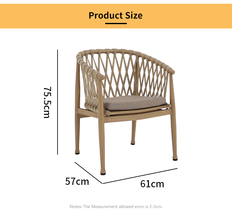 T/T, LC, OA is also available.Modern Outdoor Aluminium Furniture Aluminum Brush Wood Grain Rope Woven Garden Dining Chair