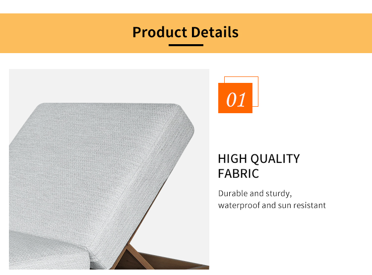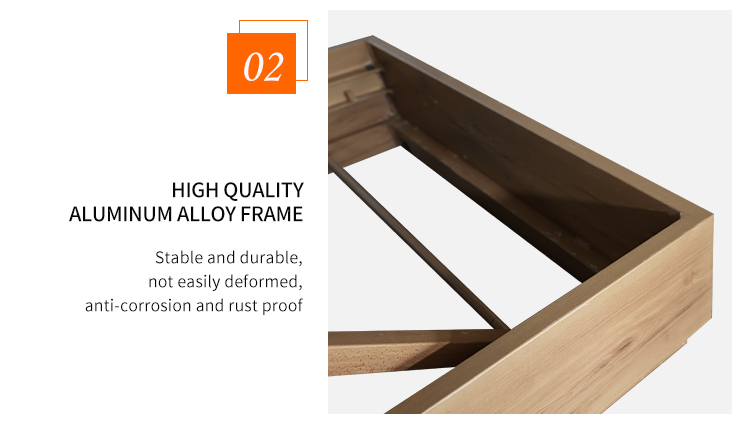 This outdoor bed is made of high-quality aluminum alloy frame, which is lightweight and durable. The heat-transferred wood grain base gives it a natural and elegant appearance, perfectly integrating into any outdoor environment. The adjustable back design allows you to easily find the most comfortable angle, and the comfortable sofa cushions provide soft support, allowing you to enjoy your leisure time in the sun.