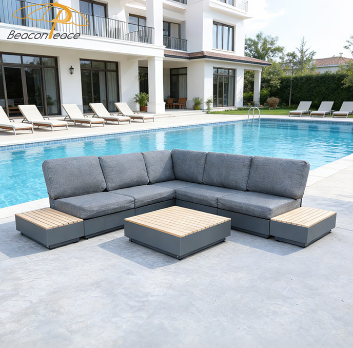 BP8540 Modern Villa Resort Outdoor Furniture Sofa L Shape Sectional Aluminium Outdoor Sofa SetMOQ :