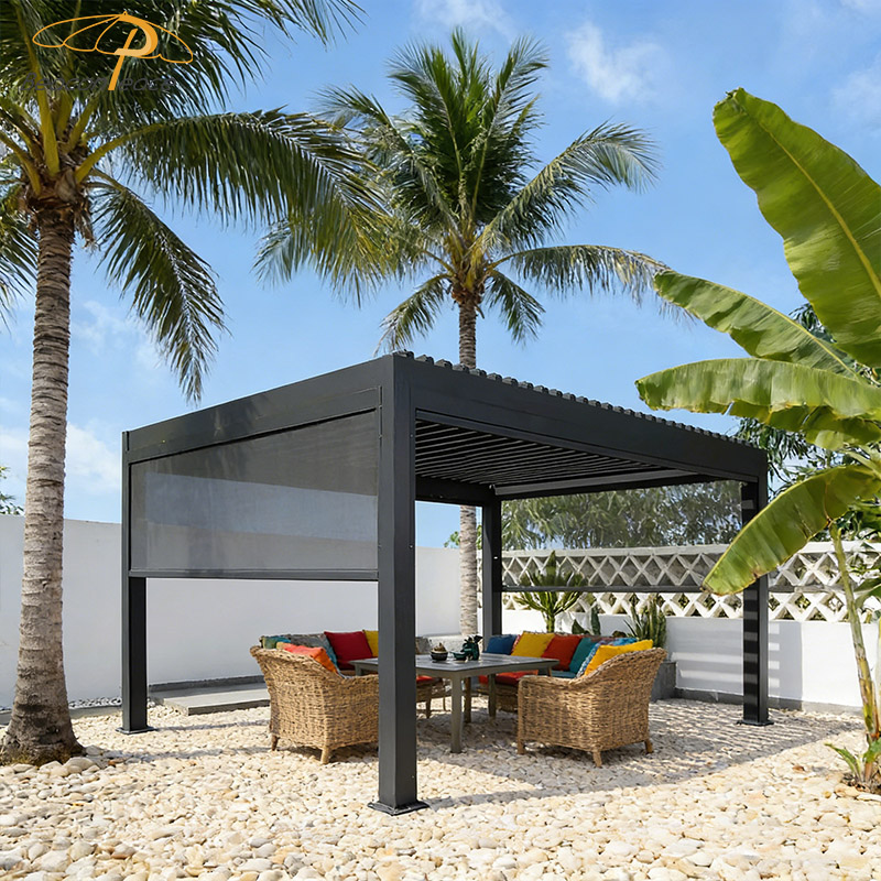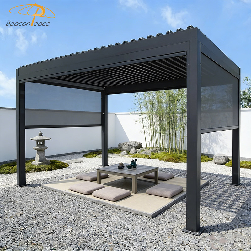 This BP8713 aluminum alloy louvered roof gazebo creates your ideal outdoor living space. With its superior wind and rain protection design, this gazebo provides reliable shelter in changeable weather. The flexible louvers allow for free circulation of sunlight and breezes, letting you fully enjoy the gifts of nature on warm days. Whether it's a gathering with friends or a moment of quiet contemplation, this is the perfect place to relax and enjoy life. Choose our gazebo and begin your leisurely moments!